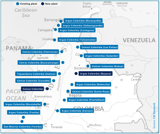 圖2:哥倫比亞水泥廠分布