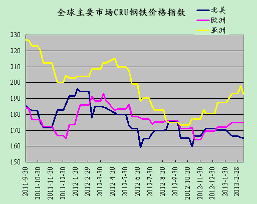(關(guān)鍵字:CRU 國際鋼鐵價(jià)格指數(shù) 歐洲 北美 亞洲)