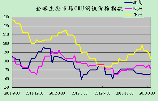 (關鍵字:CRU 國際鋼鐵價格指數(shù) 歐洲 北美 亞洲)