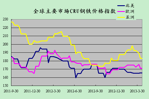 (關(guān)鍵字:CRU 國際鋼鐵價格指數(shù) 歐洲 北美 亞洲)