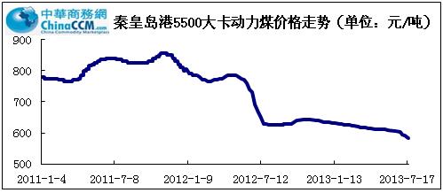 國際煤炭市場(chǎng)價(jià)格走低,增加了我國的煤炭進(jìn)口。秦皇島動(dòng)力煤由2011年800多元/噸 跌到今年的600多元/噸。7月20日價(jià)格跌到583元/噸。煤礦業(yè)到了虧損的邊緣。