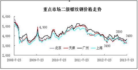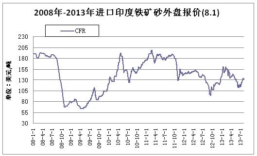 進(jìn)口鐵礦石從2013年2月6日今年最高價(jià)160美元/噸。2013年6月13日回落到最低價(jià)112.25美元/噸。雖然遠(yuǎn)遠(yuǎn)高于2008年的60美元/噸,但是就鋼鐵企業(yè)看,鋼材價(jià)格已經(jīng)沒有成本的承受力了。