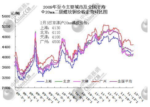 實(shí)際上,即使進(jìn)入2月份,經(jīng)濟(jì)運(yùn)行總體趨勢仍是增速緩緩回落。影響鋼材市場需求進(jìn)一步減少。這就使得進(jìn)入今年2月份,鋼材市場在需求疲軟,庫存增加1700萬噸的嚴(yán)峻形勢下,價格面臨很大的回落壓力。實(shí)際上今年1月5日上海市場大螺紋鋼價格4160元,日前已經(jīng)跌破4000元 顯示出建筑市場投資的回落趨勢的嚴(yán)峻性。 8mm熱卷一直保持在4230,春節(jié)過后,貿(mào)易商曾試圖拉漲市場價格,但目前僅僅4250元一噸。市場需求疲軟仍制約鋼材價格走勢。